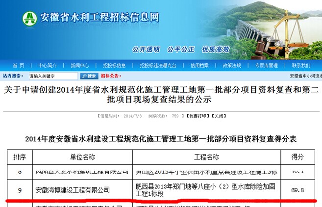 同時按照《安徽省水利建設工程規范化施工管理工地評選辦法》(皖水行協[2014]6號)的要求,安徽省水利水電行業協會施工企業分會組織了復查組,對第一批通過現場復查且于6月30日前完工的16個項目的工程資料、現場管理等方面,進行了復查,對第一批16個項目的工程資料進行了賦分。肥西縣2013年鄭門塘等?。?)型水庫除險加固工程1標段順利通過了復查。