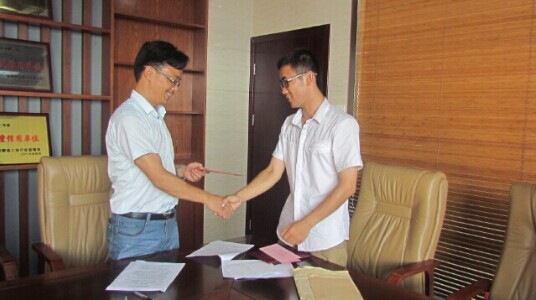 我公司于2013年8月參加了資助貧困大學(xué)生的愛心活動,資助了2名在校大學(xué)生。今年,被資助的其中一名同濟(jì)大學(xué)的學(xué)生,因?qū)W習(xí)成績優(yōu)異被保送讀研。我公司決定繼續(xù)資助此名大學(xué)生,直至他完成研究生的全部學(xué)業(yè),于2014年8月1日與這名學(xué)生簽訂了新的助學(xué)協(xié)議,將第一學(xué)年的助學(xué)金交到了他的手中。